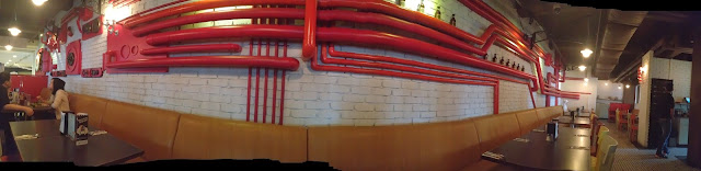 Oopssss!!! Sorry for my failed photography skills, I'm not an expert... I like the wall decoration, such a creative by using pipe, in fact, it's a plastic pipe....